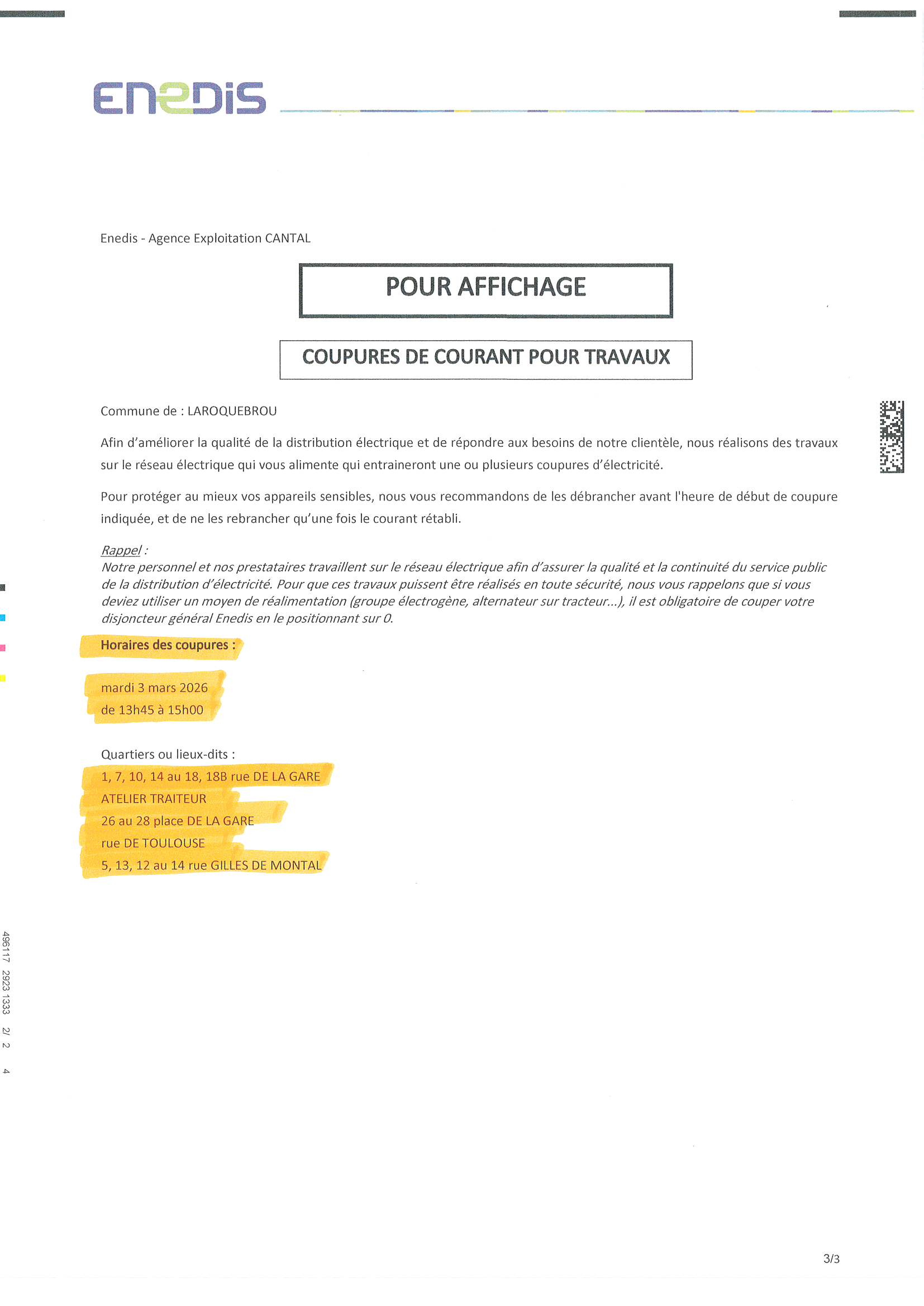 Coupures de courant pour travaux